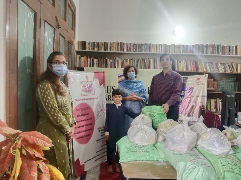 Reach to be Heard in collaboration with La Compte, Network for Human and Social Development and Kaus-e-Kazah Welfare Organization completed a food ration distribution from zakat contributions received during Ramadan. This endeavor was focused towards the parents and children of schools that are being administered and managed by Kaus-e-Kazah Welfare Organization and their students are evaluated by Reach to be Heard.